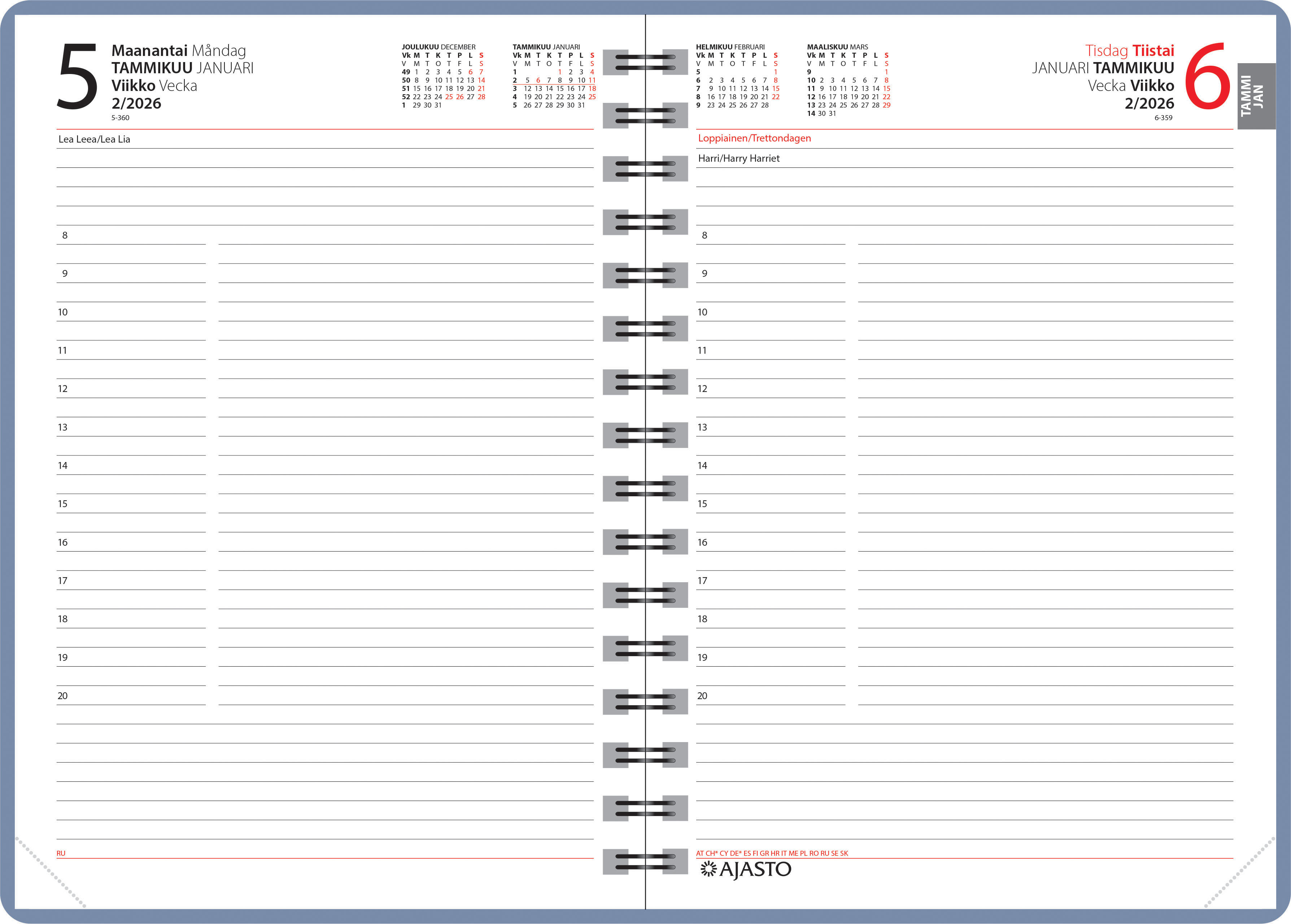 Kun kaipaat tilaa päiväkohtaisille muistiinpanoille.
