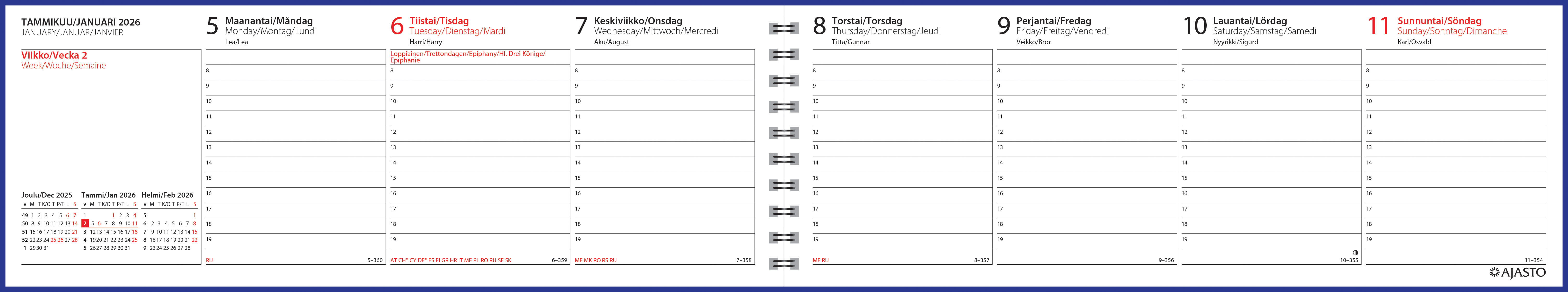 Kansainväliselle kalenterinkäyttäjälle, helpottaa yhteydenpitoa ulkomaille.
