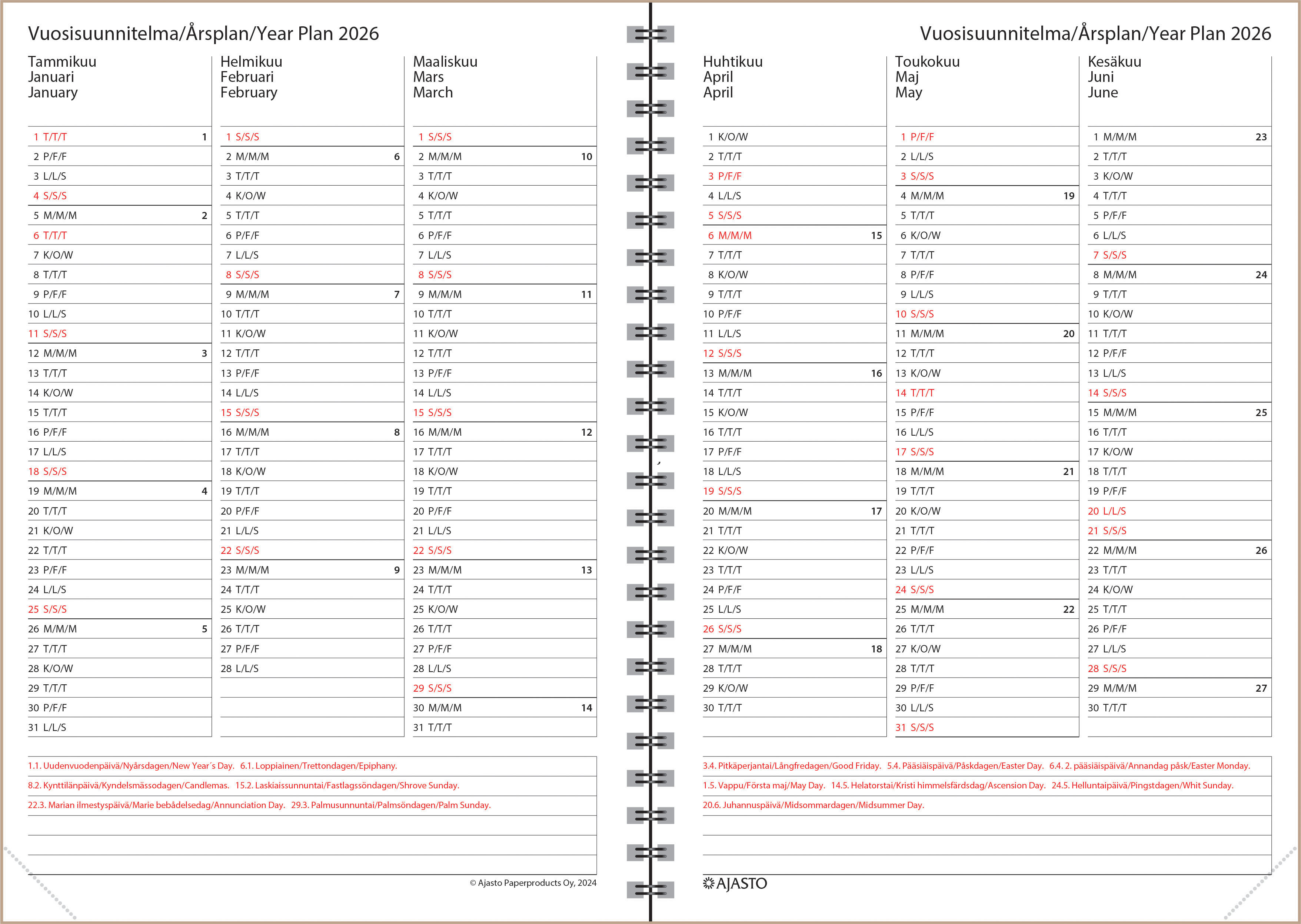 • 2026 yleiskalendaario