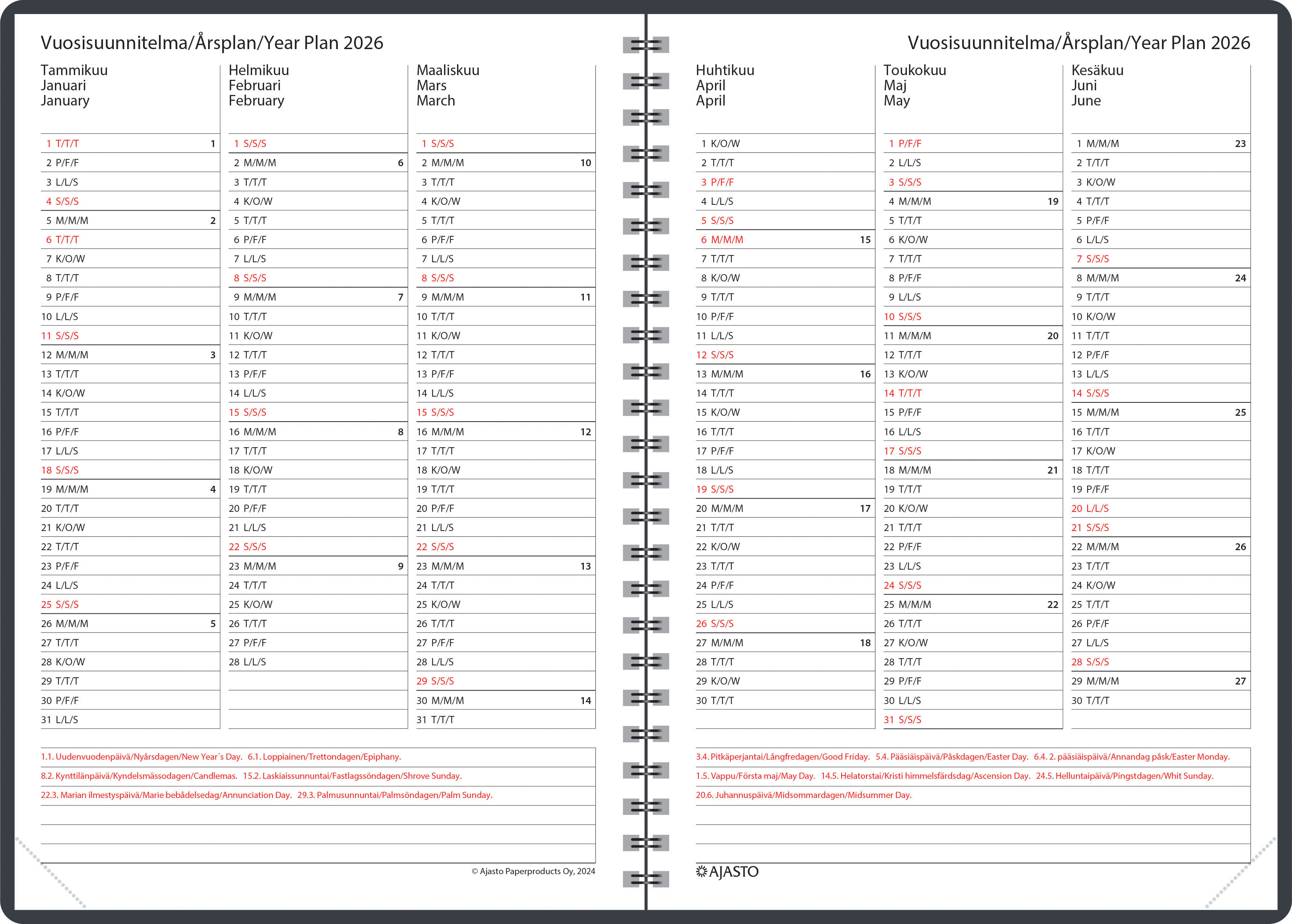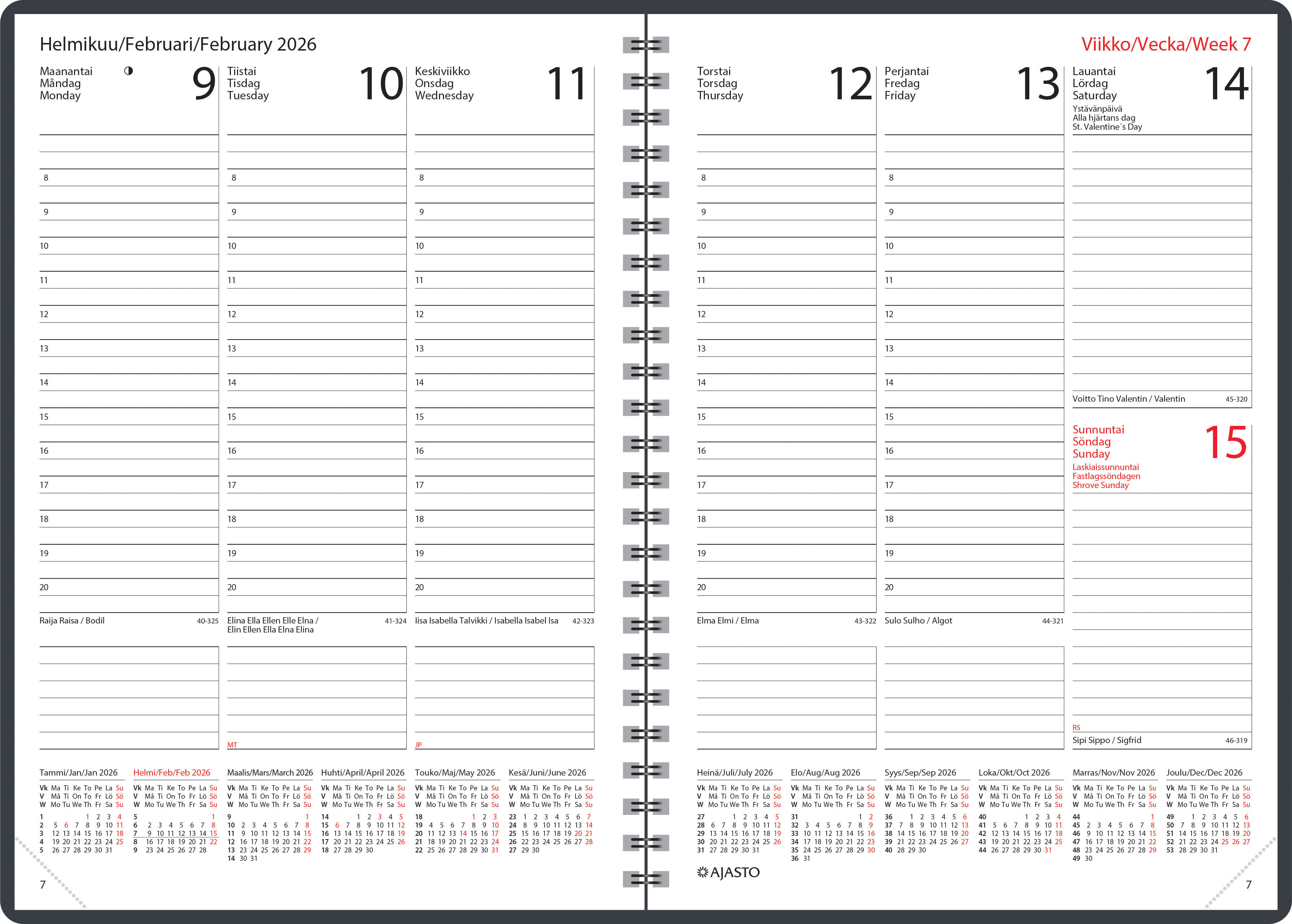 Kalenteri, joka kestää kovaakin kulutusta.